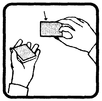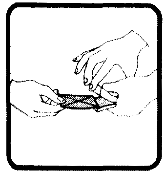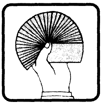 Очень полезное для многих фокусов приспособление из клейкой целлофановой ленты. Есть два вида целлофановой ленты: обычная конторская клейкая с одной стороны и клейкая с двух сторон, которую называют двойной клейкой лентой. Как вы позднее поймете, двойная клейкая лента очень полезна для фокусника, в частности, в том случае, если аудитория не подозревает о ее существовании. Если вы хотите проделать фокус, требующий двойной клейкой ленты, а ее под рукой нет, то сделайте волшебную петлю сами. Для этого возьмите обычную конторскою клейкую ленту и сделайте из нее петлю, как показано на рисунке, КЛЕЙКОЙ СТОРОНОЙ НАРУЖУ. Теперь положите эту петлю на плоскую поверхность и выпрямите ее в двойную клейкую ленту, которой сможете воспользоваться для любой надобности. Ссылки на Волшебную Петлю вы найдете во многих местах этой книги, и теперь вы всегда сможете сделать это полезное приспособление для многих фокусов из обычной конторской ленты "скотч"