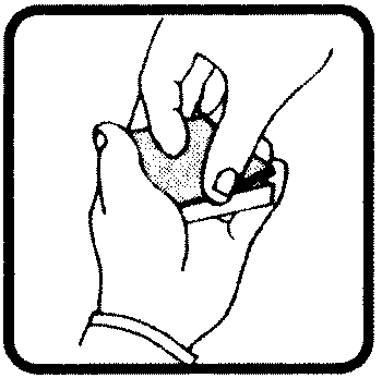 Способ удержания колоды в левой руке для сдачи карт. Указательный палец левой руки охватывает торцевую кромку колоды, а средний, безымянный и мизинец правую боковую сторону, большой палец располагается сверху (как показано на рисунке). Этот захват удобнее, и его можно считать более профессиональным, чем стандартное положение колоды в руке для сдачи, поскольку указательный палец закрывает торец, что свидетельствует о "честности" сдачи. ТЕХНИЧЕСКИЙ ЗАХВАТ обязателен почти во всех фокусах, связанных со "сдачей", поэтому работа в таком захвате станет для вас со временем естественной и легкой. Он очень важен и для более сложных трюков, таких как "Второй" или "Низ".
