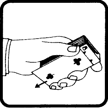 Колода находится в левой руке и покоится на ладони, причем четыре пальца лежат на правой боковой кромке колоды, а большой палец — сверху колоды. В таком положении большой палец сдвигает карту на кончики остальных пальцев таким образом, что появляется возможность вытянуть карту правой рукой и произвести сдачу каждой карты.